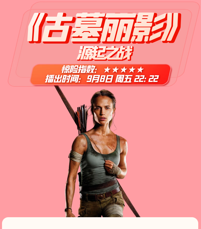 根据同名经典游戏改编的大片《古墓丽影:源起之战》集齐了盗墓、动作、悬疑等热门元素,神秘而恢弘的古墓、充满脑洞的夺命机关,这样的组合配置惊险刺激又引人入胜。“坎妹”艾丽西亚维坎德搭档吴彦祖,靠实打实的战斗力直面人多势众的反派组织,上演多场肉搏和枪战场面。