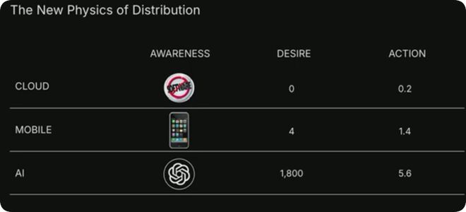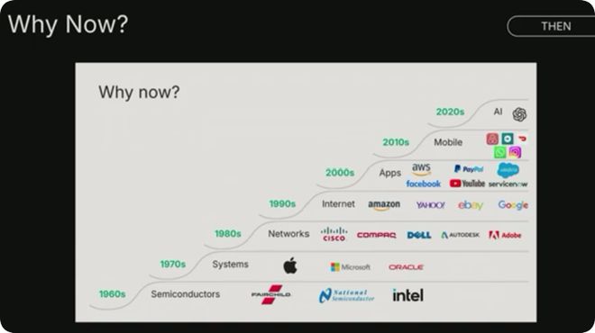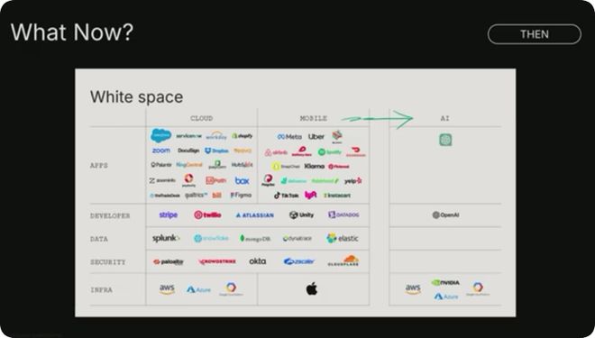 在之前的技术转型中,大多数这样的公司都处于行业顶端,大多集中在应用层。我们一直认为,并且现在依然坚信,AI领域也是如此,价值就存在于应用层。但你猜怎么着?竞争也很激烈。