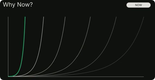 与之前的浪潮相比,这次的机遇要大得多,而且到来的速度也快得多。我不太喜欢这张图,横轴是时间,纵轴是某个虚荣指标,人们常用它来为各种观点找依据。