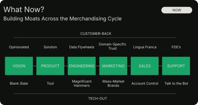 页面底部是从技术出发的视角,顶部是从客户需求出发的视角。通过这种方式,你可以在整个价值链上建立起竞争壁垒。如果你的客户不确定他们想从AI中获得什么,你要有自己的见解。